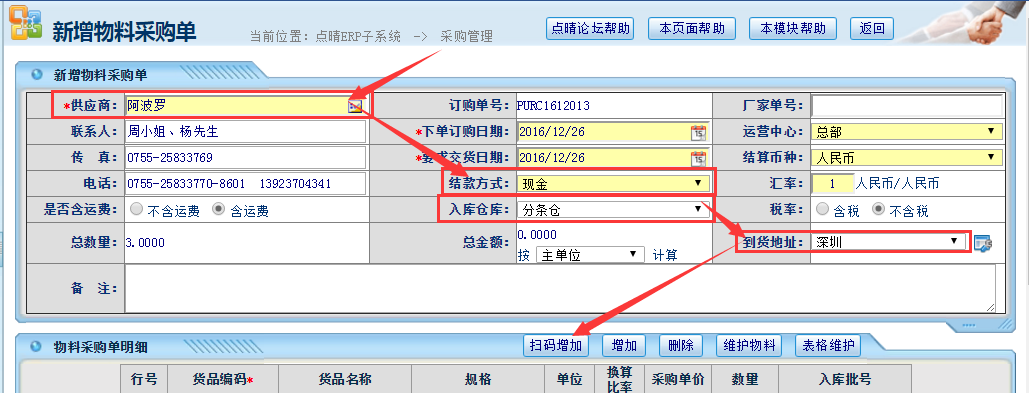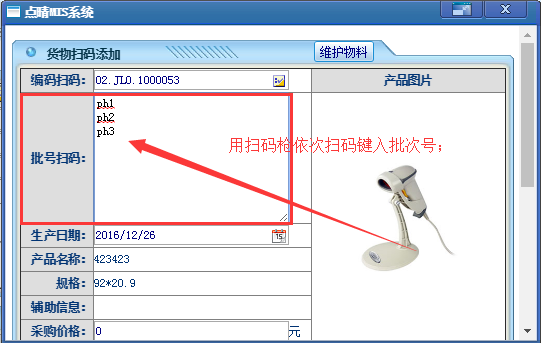 点晴模切ERP、JXC扫码新增采购单操作(扫码枪批量录入批号)