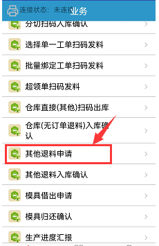 步骤:打开APP,找到“其他退料入库”菜单进入界面