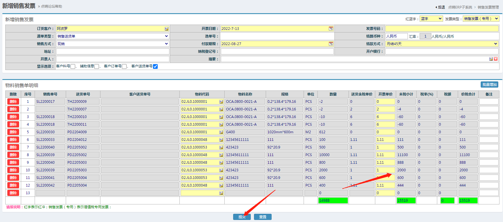 点晴模切ERP-新增销售发票