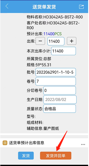 确认后点击送货并回单完成操作