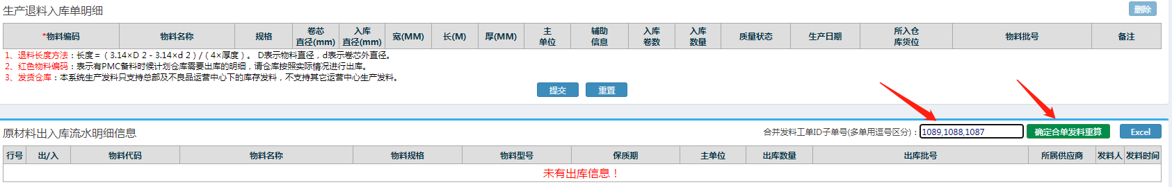 进入界面后,输入对应的子单号并且用逗号隔开,(注意逗号要英文输入法逗号),点击确定合并发料重算按钮 点晴模切ERP更多信息:https://moqie.clicksun.cn,联系电话:4001861886 该文章在 2023/3/21 17:41:10 编辑过 |