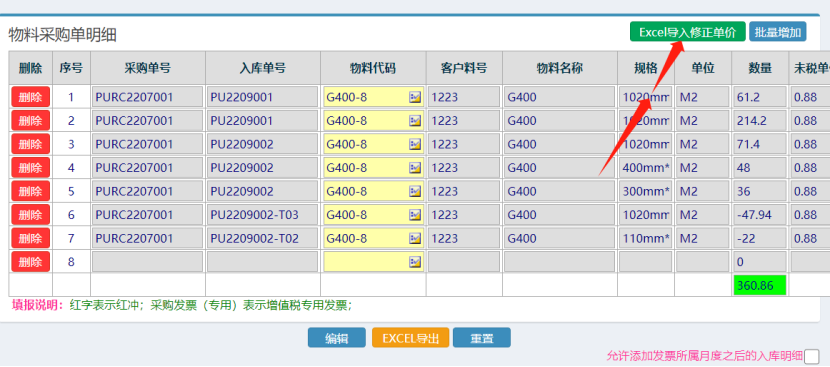 :点晴ERP-如何批量修改采购发票单价![]() 点击进入 如下图: 操作如下图: ![]() 导出明细后修改单价 如下图: