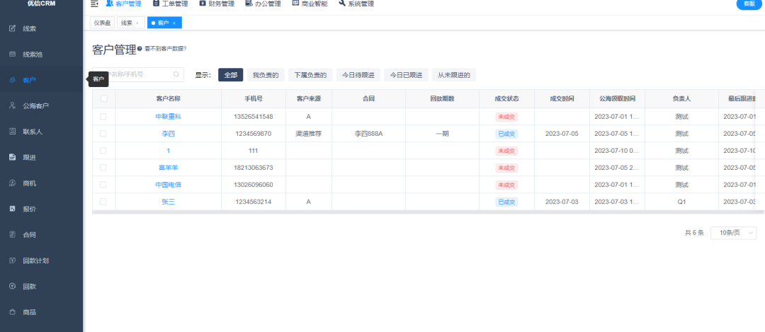 五、数据看板可视化 数据看板就是数据分析,在CRM客户管理系统后台,可以不同维度的进行数据分析,在跟进过程中进行分析检测。 说到这里可以结束了,上述就是对于CRM客户管理系统的功能的介绍,您大概了解了吗? 该文章在 2023/11/16 21:43:51 编辑过 |