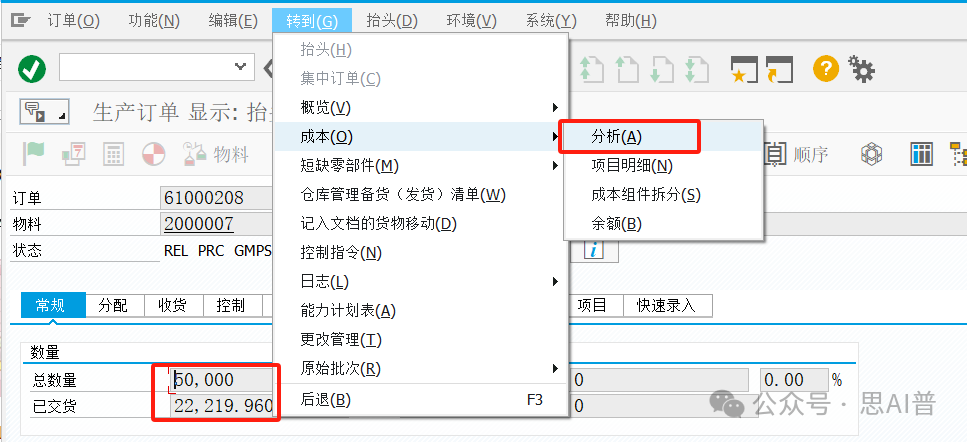 前言 我们继续财务月结工作,制造费用结转到生产订单之后就开始了生产订单的结转,因为费用部分已经收集完成,我们现在第一步进行在制品的计算。 01、背景介绍 SAP系统在制品计算步骤:KKA0/KKAO SAP在月末计算在制品的前置条件:工单状态为REL(下达)或者PDLV(部分报工),有在制品的工厂,一定要在月底最后一天24时前关闭已完工的订单(如果过时了就要去点收货已完成状态或者TECO关闭订单) 02、需求实现 在制品基本计算逻辑: 在制品进=投入-产出 投入=订单领料(实际领用数量*价格1)+工时(作业报工数量*作业实际单价) 产出=订单收货(实际收货数量*价格2) 价格1:如果工单领料有S价则是S价,如果有V价则是V价 价格2:产出的成品一般是S价。 订单完结TECO在计算在制品会把之前的在制品冲销 一、执行事务代码 KKA0 关闭期间
