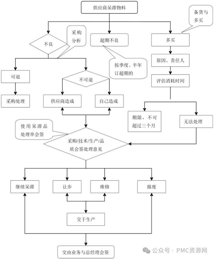 在仓库管理中,对大家来说,呆滞物料是一个常见且棘手的问题。有效处理呆滞物料不仅能优化库存,还能节省成本。下面我们通过一家公司的仓库呆滞物料处理管理程序,来了解处理呆滞物料是如何助力提升仓库管理效率,实现资源合理利用的。 1.目的 预防呆滞物料发生、处理呆滞物品;节约仓储空间、减少公司损失,结合工厂的实际情况,特制定本规定。 2.适用范围 本制度适用于仓库库存呆滞物品的管理与处理事项及采取的预防措施; 3.职责 3.1 仓储部负责每月1日前提供上月盘点的呆滞物品详细清单给计划部、财务部及相关责任部门,责任部门出具体方案,计划部跟进处理结果; 3.2 品质部和技术部依仓库盘点的呆滞物品进行检验和确认; 3.3 依确认结果各相关责任部门(采购、技术、销售、生产、计划)负责将呆滞物品依本管理程序或相关流程进行处理; 3.4 财务部负责对呆滞物料的监控和成本核算; 4.程序 4.1 呆滞物品的定义: 4.1.1 合格呆滞品:时间长达6个月以上未有过出库的成品或入库时间长达6个月以上未有生产领料的零部件,并且无质量问题的(光器件产品3个月报检一次,机柜类产品3个月报检一次)。 4.1.2 质量呆滞品;存在质量问题可修复或可采购配件补齐的半成品(包含客退品、采购未及时退货的不良品)。 4.1.3 报废呆滞品:无法返修或返修也无法达到品质或技术要求的。 4.2 呆滞物料产生的原因: 4.2.1 招投标退回样品; 4.2.2 客户订单变更; 4.2.3 大量备货而与实际需求不符合; 4.2.4 客户处因质量问题的退货; 4.2.5 公司内部质量问题造成物料不能使用; 4.2.6 物料数据管理不当; 4.2.7 设计变更; 4.2.8 采购多买; 4.2.9 供应商来料质量问题未及时退货; 4.2.10 生产车间超领多余物料存放几个月再退仓; 4.3 呆滞物料处理流程: 4.3.1 仓库利用每月月末盘点,统计好呆滞物品详细清单(仓库每月整理物料库存报表时,应将呆滞物料的编号、名称、规格、数量、最后异动日予以明确列出),由计划部组织相关部门进行初步评审后,仓库根据评审结果区分可返修再次利用的和报废的,并放入待处理区,待品质部组织相关部门进行处理; 4.3.2 由品质部负责根据仓库提供的呆滞清单,调查呆滞物料产生原因,建立呆滞物料评审表,召集相关人员开会讨论拟定处理方式和期限,总经办部门领导审批; 4.3.3 审批后根据处理方法进行处理,等待利用、供应商回收、补发零部件、报废; 4.3.4 可用于二次利用的,由设计部提供具体利用方案,规定完成时间、负责人; 4.3.5 报废品:由仓库通知回收、监督人员到厂回收,仓库做好出仓记录,交财务平帐(按报废流程进行处理); 4.3.6 计划部负责每批呆滞物料的追踪结果并于每月生产经营会议或生产计划会议上提出; 4.3.7 核价组、财务部负责呆滞物料处理的成本核算; 4.4 呆滞物料产生种类及对应处理方法: 4.4.1 招投标退回样品造成的呆滞物料(按招标样品退回流程图处理,见附图); 4.4.2 客户订单变更造成的呆滞成品或零部件: 4.4.2.1 已做成品的,销售部进行评估是否可以后续利用或更改配置可用于其他客户; 4.4.2.2 未做成品的,销售部和技术部评估将零部件用于其他产品,或技术研发新机型时优先考虑是否替代?亦或销售人员跟客户沟通消化这些零部件;采购可以退货的由采购协商退回供应商。 4.4.2.3 以上已做成品拆解零部件或未组装的零部件若不能二次使用需报废时业务部按报废申请流程运作; 4.4.3 供应商来料(超期)不良未及时处理或备货多买、仓库数据不准造成PMC 多申请等造成的呆滞物料(按供应商呆滞物料处理流程图处理,见附图); 4.4.4 客户因质量问题退货引起的呆滞物料 4.4.5 设计变更造成的呆滞物料: 4.4.5.1 可二次利用的,由设计部提供具体利用方案,规定完成时间、负责人; 4.4.5.2 不可二次利用的,由仓库提出报废申请,按报废处理流程进行(后续技术部在出设计变更通知时注明处理方式); 4.4.6 生产车间超领多余物料存放几个月再退仓: 4.4.6.1 车间多余物料若自损造成报废的按照报废处理流程执行(后续杜绝超领料,严格按照套料领料执行); 4.4.6.2 车间多余物料经品质部 IPQC判定OK按良品办理退库手续; 4.4.6.3 由车间挑选来料不良存放的呆滞物料或存放时间过长造成不良的呆滞物料按不合格品控制程序执行(各车间应当每次完成PMC 下达每批的产品转序单后应当清理多余物料); 4.5流程图: 4.5.1 招投标退回样品造成的呆滞物料处理流程图: