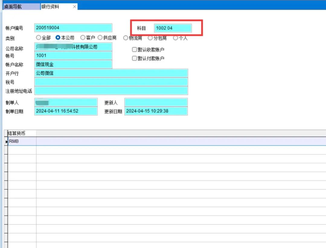 那么贷方科目是怎么出现的呢,从销售收款单可以看出,收款账户是微信现金,在基本资料-银行资料中我们设置了这个银行对应的科目,这个就是贷方科目。因此贷方科目不是固定的,根据销售收款单中往哪个账户收款决定。