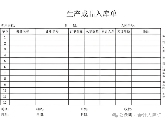2. 反映物资动态情况的原始记录和凭证物资(包括原材料、辅料、半成品、成品等)的流动是企业生产活动的血脉。通过设置入库单、出库单、库存盘点表、领料单、关联公司之间的调拨单等等,可以清晰追踪物资的流入流出,确保物料消耗的准确计量。这些记录不仅是成本控制的关键,也是库存管理的基石。