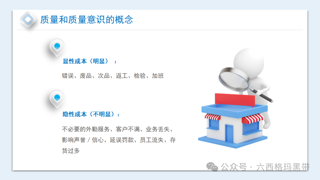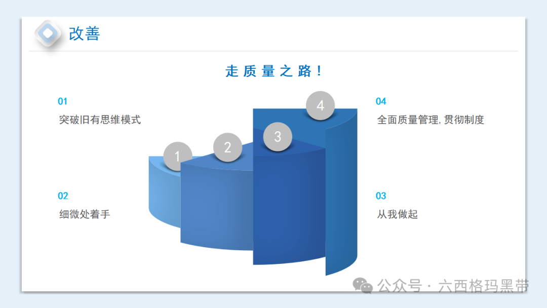 持续改进与质量意识提升质量意识的提升是一个持续的过程,我们需要不断改善,持续改进。不是不愿改进,而是不屑于小的改进。原来的老思想根深蒂固,一时难以适应,但我们必须努力克服,以适应新的质量要求。质量的提升需要治标更要治本,首先主管要有更强的质量意识,然后主管再加强操作工的培训。治本的关键在于提升全员质量意识,包括意识和专业知识的培训、规范的操作培训以及培训的考核。 持续改进的重要性持续改进是质量提升的关键。我们不能满足于现状,而要不断寻找改进的机会。例如,通过定期的质量审核,发现生产过程中的问题,并采取措施进行改进;通过员工的建议和反馈,不断优化生产流程和产品质量。持续改进需要我们全员参与,每一个人都要树立质量意识,积极提出改进建议。 提升全员质量意识