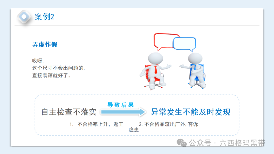 质量意识缺乏的案例让我们来看一些质量意识缺乏的案例。案例1、案例2、案例3、案例4和案例5,这些案例都反映了我们在工作中可能遇到的一些问题。比如,小小的错误被忽视,最终导致小事变大事;原物料屡屡领错,反映出我们的管理存在漏洞;对工作要求理解不清,盲目操作,等等。这些案例给我们敲响了警钟,我们必须从中吸取教训,避免类似问题的发生。 案例1:小小的错误被忽视在一个电子产品的生产线上,工人在装配过程中发现了一个小小的螺丝没有拧紧,但认为这是一个小问题,没有及时处理。结果,这个产品在客户使用过程中出现了故障,导致客户对我们的产品失去了信任。这个案例告诉我们,小小的错误如果不及时处理,可能会引发严重的后果。 案例2:原物料屡屡领错在另一个生产线上,工人多次领错了原材料,导致生产过程中断,延误了交货时间。经过调查发现,这是由于原材料管理混乱,标识不清导致的。这个案例反映了我们的管理存在漏洞,我们需要加强原材料管理,确保每一种原材料都有清晰的标识和严格的领用制度。 案例3:对工作要求理解不清在一个软件开发项目中,开发人员对客户需求理解不清,盲目开发,结果开发出的产品与客户的需求相差甚远,导致项目失败。这个案例告诉我们,我们必须与客户保持密切沟通,确保对客户需求有准确的理解,避免盲目操作。 质量意识观念分享在质量观念方面,我们常常存在一些错误的认识。比如,认为质量是各人自扫门前雪,莫管他人瓦上霜;认为质量差不多就可以了;认为质量只牵涉到有形的事务,等等。然而,正确的质量观念应该是:品质不是检查出来的,是设计出的,生产出来的,预防出来的,习惯出来的,是以客户的满意度为依归的;质量是价值与尊严的起点,是企业赖以生存的命脉;质量的标准是由市场、客户来决定的;质量是环环相扣的过程;质量就是符合顾客的需求;质量看得见,过程是关键;第一次就做好,一开始就符合要求;零缺陷,100%是可以完全达到的;没有好的品质,公司明天可能就要破产,我明天可能就要失业;你的下一道工序就是你的市场,下一道工序是用户;品质没有折扣,品质就是按照客户的要求不折不扣的执行;品质的提升不能一蹴而就,必须通过持续改进而达到。 正确的质量观念