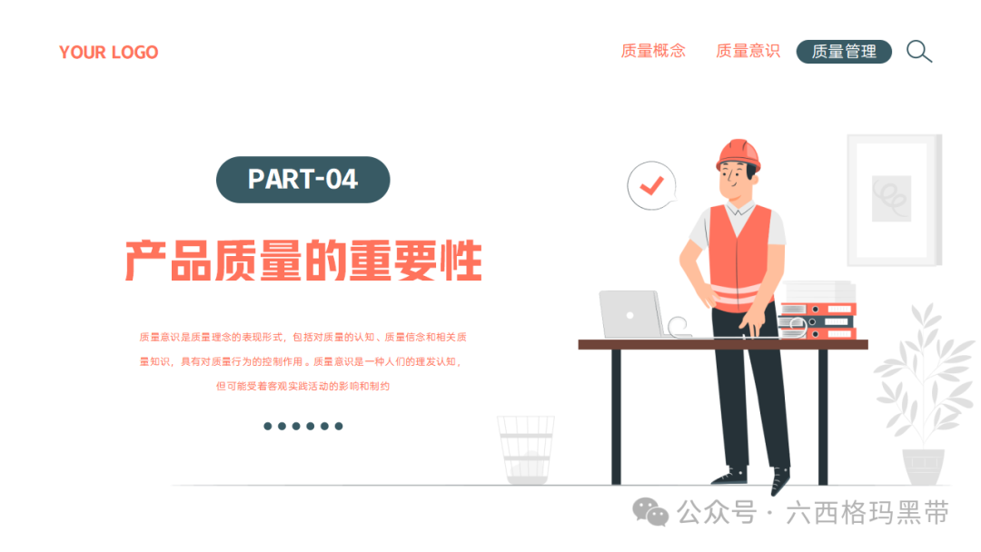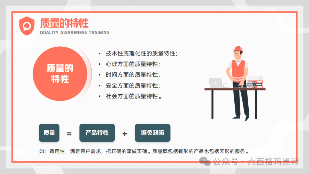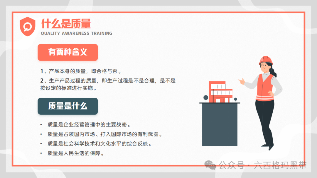质量已成为企业持续发展和赢得客户信任的关键因素。质量意识,作为质量理念的具体体现,不仅关乎产品的优劣,更直接影响到企业的声誉、市场份额乃至生存与发展。因此,加强员工的质量意识培训,对于提升企业整体质量管理水平、促进企业文化建设具有重要意义。我们来探讨质量意识的重要性、质量的基础知识、对质量的不同理解、质量的意义以及质量的特性,旨在为员工提供全面而深入的质量管理知识,促进质量意识的提升。