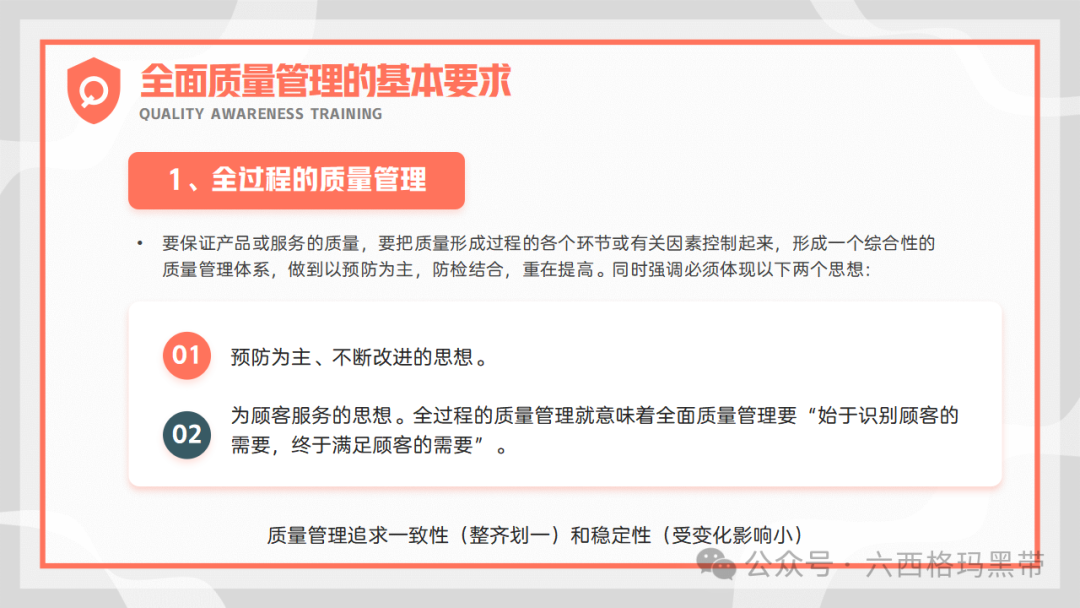 2. 全员参与:质量管理不仅仅是质量部门或质检人员的责任,而是需要全体员工的共同参与。每个员工都应该具备质量意识,关注自己工作的质量,并积极参与质量改进活动。
