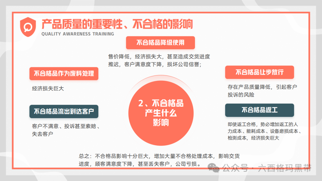 产品质量是企业生存和发展的基石,不合格品的出现不仅会直接影响顾客的满意度,导致企业形象受损,还可能引发一系列连锁反应,最终造成公司亏损。不合格品会增加企业的处理成本,包括返工、报废、赔偿等费用,同时还会影响交货进度,破坏与客户的合作关系,甚至可能因违约而面临法律诉讼。因此,严格控制产品质量,避免不合格品的产生,是企业质量管理工作的重中之重。