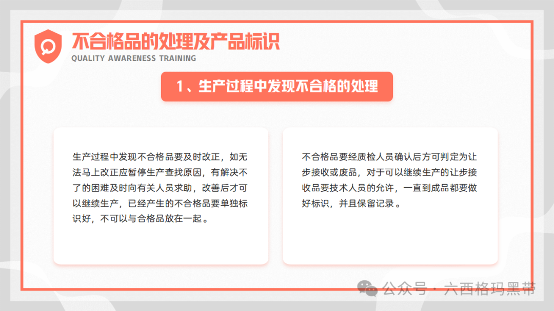在生产过程中,一旦发现不合格品,员工应立即停止生产,并对生产过程进行检查和分析,查找原因并采取有效的纠正措施。对于无法改正的不合格品,应及时报废并处理,防止其流入市场或影响下一道工序的生产。同时,不合格品的处理应经过质检人员的确认和审批,确保处理的合理性和合法性。