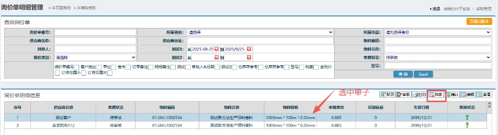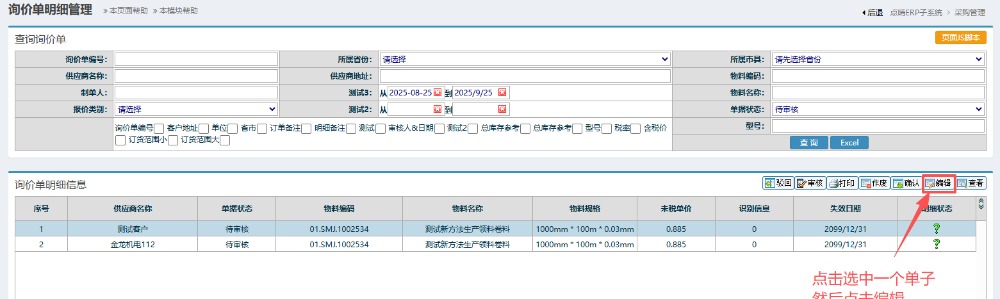 点晴模切ERP-编辑和作废询价单-操作流程
