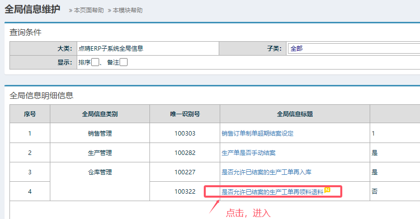 点晴模切ERP-如何设置已结案的生产工单禁止再领料退料