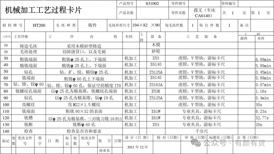 通过【图4-1】机械工艺卡,可知: