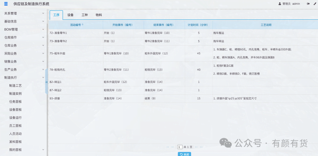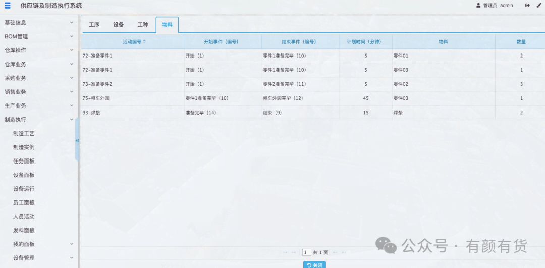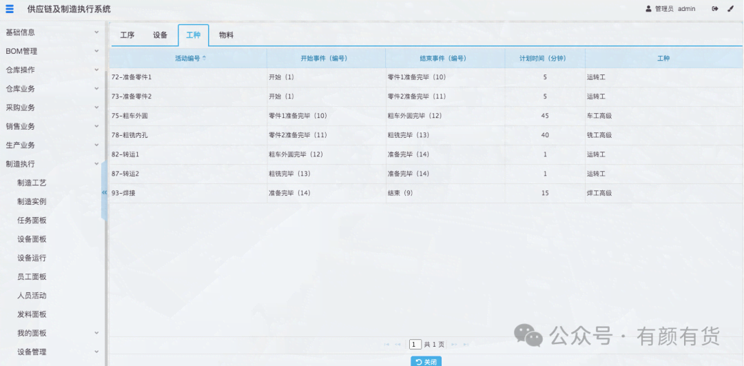 2. 当制造实例运行时,每个活动上资源(设备、人员、物料)也是明确的(指派)。