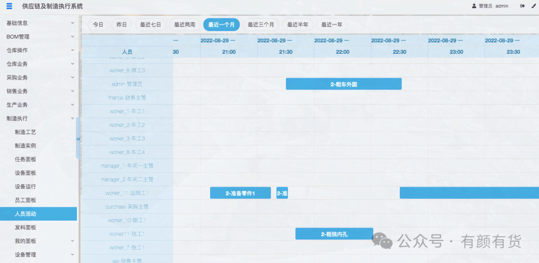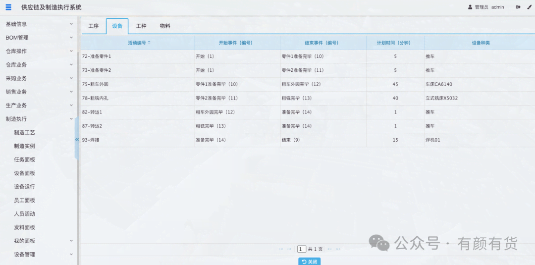 3. 当制造实例上的活动进行时,开始工序、结束工序标记了活动的起始、结束时间,而这个过程中,设备和人员是被占用的,所以设备和人员的时间也是明确的。
