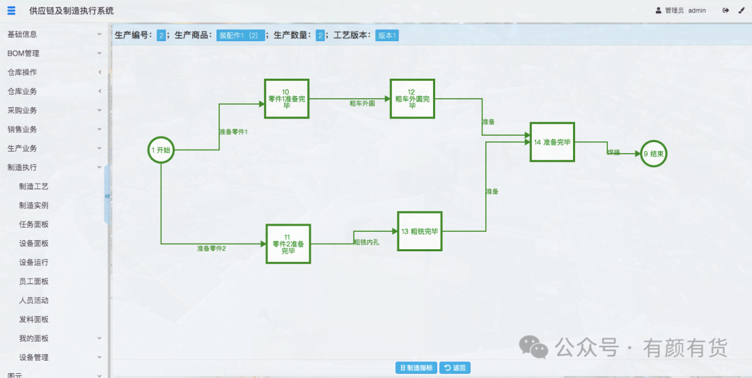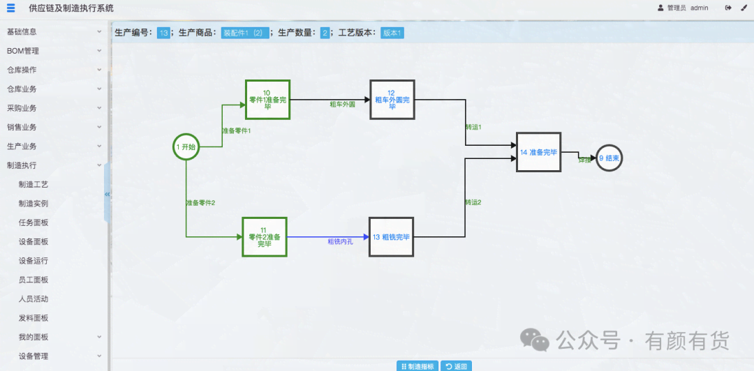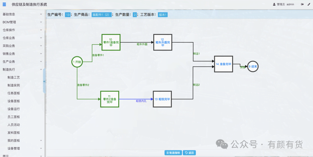 管理员通过制造实例运行图,可以查看不同制造实例的生产进度。