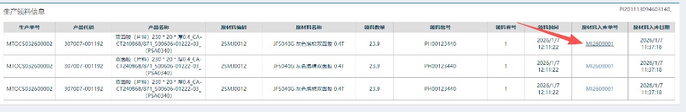 进入界面后,点击“物料追溯”按钮