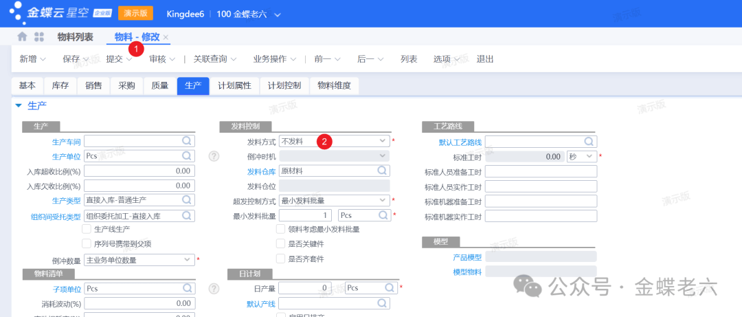 二:如果这部分物料在BOM中有体现一般有研发管理支撑的企业,在进行整体研发设计的时候,针对标准BOM(物料清单)的结构,通常会将这些辅料以准确的单耗(或包含损耗率的用量)列入BOM中。 这样做的好处显而易见:标准成本更准确,BOM结构更完整。 但在实际执行层面,如果不区分管控模式,直接按BOM跑MRP(物料需求计划)并生成辅料领料单,现场仓库管理员和车间统计员绝对会疯掉的。举例:难道领1000个螺丝还要一个个去数吗? 针对这种情况,在金蝶ERP实施中,我们通常推荐以下两种处理方案。 A:调拨+倒冲管理(最推荐)辅料在BOM中体现,并且会进行车间的一个实际发料,而且辅料不容易进行管理。 这是中大型制造企业最常用的模式。我们不在生产工单下达时直接触发领料,而是建立“车间仓”(或称线边仓)的概念。 实物管理: 仓库将整包、整箱的辅料(如一箱螺丝、一卷包材),通过【直接调拨单】调拨到“车间仓”。 车间工人随用随取,无需每次生产都开领料单。 系统消耗(倒冲): 在BOM或物料属性中,将该类物料设置为“倒冲”(Backflush)。 当生产汇报(或入库)完成时,系统根据BOM设定的标准用量,自动从“车间仓”扣减相应的辅料库存。 盘点差异处理: 由于辅料必然存在非正常损耗,系统倒冲扣减的数量往往少于实际消耗。 月底对“车间仓”进行盘点,将差异部分生成【其他出库单】(计入制造费用)或调整倒冲数量,确保账实相符。