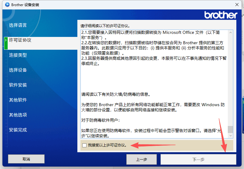 点击“我接受”》“下一步”