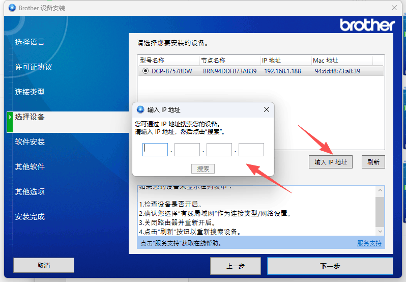 或者是尝试手动输入IP地址,然后点击“刷新”