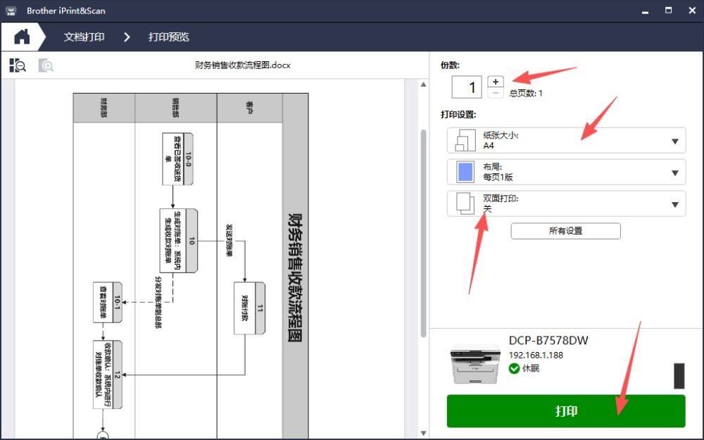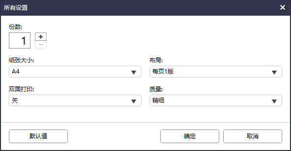3、设置好对应的打印份数纸张大小布局以及是否需要双面打印,点击打印
