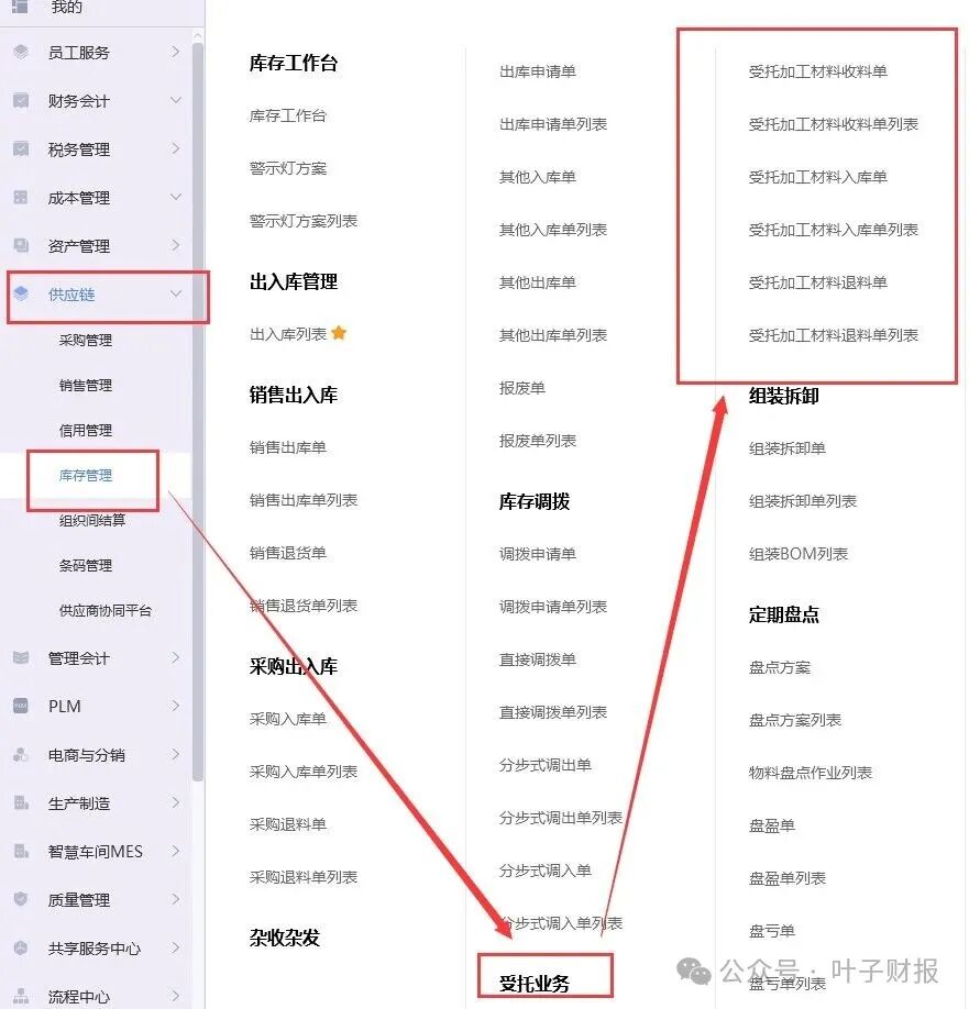 过年前写的一篇委外加工半成品的核算,现在我们来说说受托加工材料生产的产品如何核算成本,这两个知识点是正、反面,放在一块讲,会更好对比和理解。 受托加工材料:是在谈业务,签订合同时,由客户投出材料到我们工厂生产,订单签订为每一套产品的定价是多少(也是代指加工费),一共要生产多少套,损耗率控制在3%—5%内,PMC接到销售订单后以ERP系统销售模块录入销售订单,之后录入生产订单号等,同步安排车间作业,跟正常的订单相比,除了没有主要材料金额以外,成本核算流程都是一样的,按工时分摊人工、分摊制造费用等,按该订单的行号对应的产品做成本核算对象。 值得注意的是:收到客户物料时做是受托加工物料列表的入库单据,此类单据只有数量,没有成本金额。此模块单据的物料跟正常生产领用的是分开核算的,受托加工物料有入库,有生产领用,但没有成本金额。 下面我们来说说两个重点:供应链做单流程与财务记账。 一、受托加工ERP做单据的方法:由PMC部门做入库单据,登录系统账号。 1)创建客户档案:填写客户的基本信息和委托加工的相关内容。 2)合同管理:通过系统管理模块进行合同管理,签订委托加工合同,明确双方责任和权利。 3)建立生产计划:在ERP系统中建立生产计划,安排生产计划和生产任务,确保按照客户的要求进行生产加工。 4)受托加工原材料:通过仓库模块录入客户提供的原材料批次(我们统称为:客供料),保证生产所需的原材料充足。 5)监控生产进度:ERP系统可以帮助监控生产进度,了解生产线上的实时情况,确保按时完成客户的加工要求。 6)库存管理:ERP系统可以进行库存管理,及时了解产品库存情况,确保库存充足。 7)财务结算和发票管理:在生产完成后,ERP系统可以帮助进行财务结算和发票管理,确保按照合同约定进行结算,并生成相关的财务报表。 二、受托加工材料的入账方法 1)收到委托方材料时,记入备查账,备查账只登记数量、规格等与受托加工有关的内容。 加工过程中发生的人工费用、分配的制造费用,借记“生产成本”,贷记“应付工资”、“制造费用”。 2)加工完工,验收入库,借记“库存商品”,贷记“生产成本”。 交货时,借记“银行存款”或“应收账款”,贷记“主营业务收入”。同时结转销售成本,借记“主营业务成本”,贷记“库存商品”。