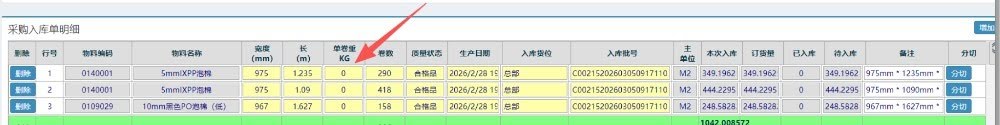 :ERP采购入库时如何填写上KG数