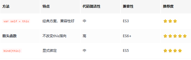 Function.prototype.bind方法显式绑定this - 代码稍长,但意图明确