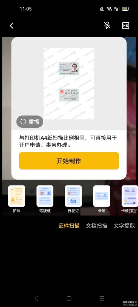 证件扫描能自动完成排版和添加水印,支持多种证件格式,如身份证、户口本、房产证等。