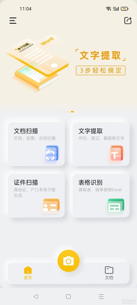 布丁扫描是一款强大的文档扫描软件,布丁扫描的风格总体上使用了拟态图标,有一种活力范,而且界面非常简洁。