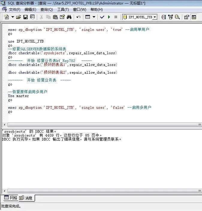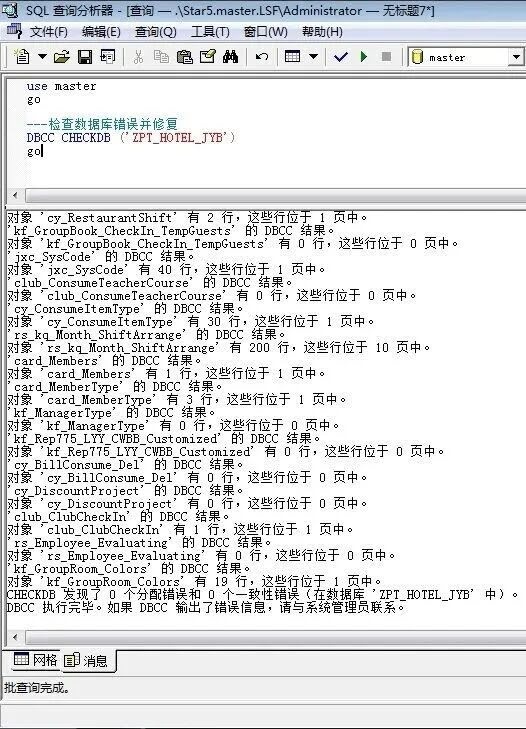 DBCC CHECKDB ('ZPT_HOTEL_JYB')