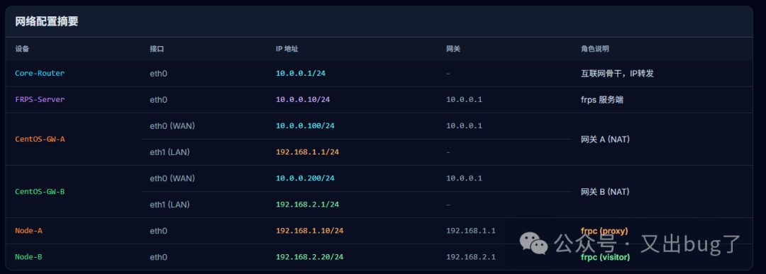 内网A:模拟公司或家庭内网,部署需要被访问的服务(如SSH)。
