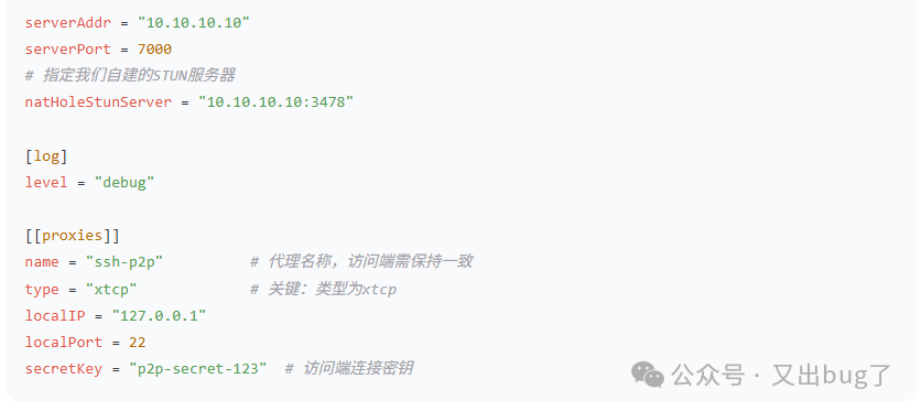 调试完毕后,请将frpstunserver的日志级别从debug调整为infowarn,避免日志过多。