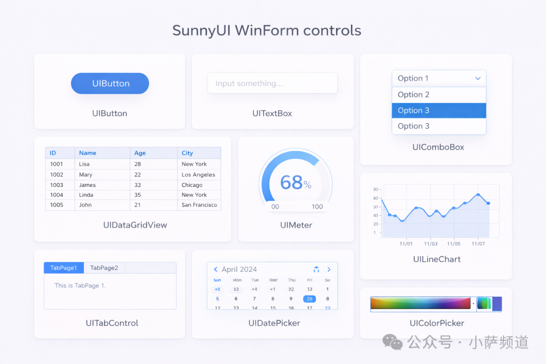 SunnyUI 是什么SunnyUI 是一个开源的 C# WinForm UI 控件库,同时也是一个多页面开发框架。它的定位非常清晰:在 WinForm 的底层能力上,封装出一套现代、好看、功能完整的 UI 组件。 简单说:它让 WinForm 的界面,可以做到不输 WPF,甚至在一些场景下更简洁。 它目前支持: