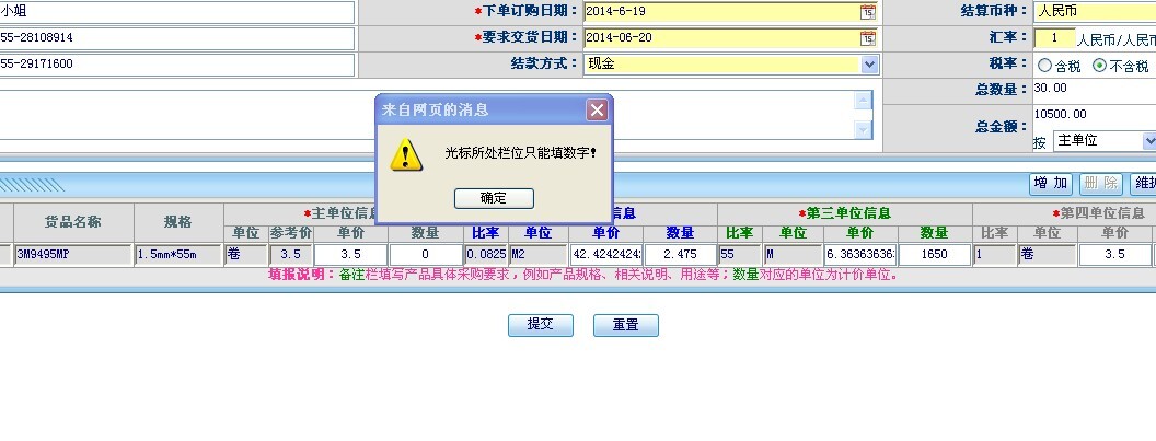 [点晴模切ERP]新增采购单提示“光标处只能录入数字”如何解决