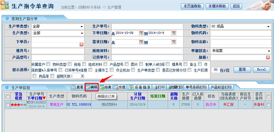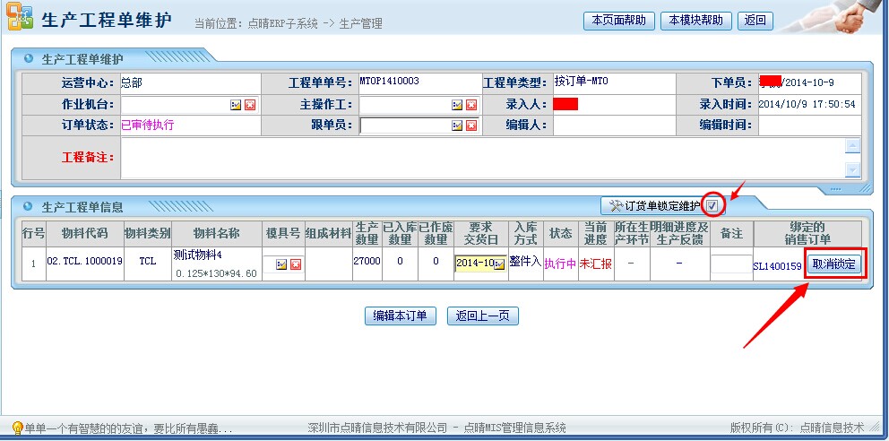 点晴模切ERP生产管理流程-生产工单取消锁定
