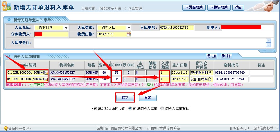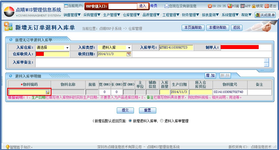 点晴模切ERP仓库管理—出库管理之无订单退料操作