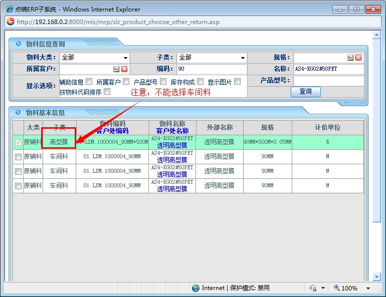 操作步骤:仓库管理——物料出库管理——无订单领料出库——新增无订单领料出库;进入界面后如下图所示: 先点“物料编码”跳转至物料选择页面;如下图所示: 按照物料名称以及宽度定位物料;注意:不能选择车间料。 输入实际退料的长度,点击提交即可。 点晴模切ERP更多信息:https://moqie.clicksun.cn,联系电话:4001861886 该文章在 2014/11/3 15:22:22 编辑过 |