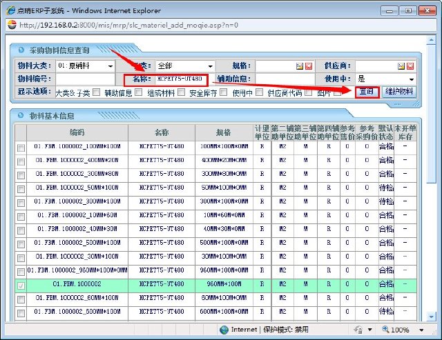 点击“货品编码”下的选择框,进入物料选择页面,如下图所示 :