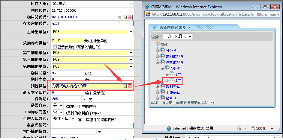点击“所在货位”,进入如下图所示页面: