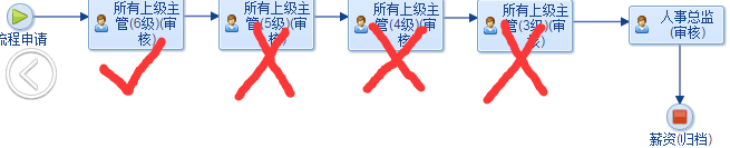 也就是说直属上级主管和所有上级主管必须是申请人的上级主管,不允许在其他审核节点之后审核节点上出现。