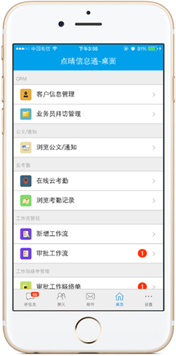 点晴MIS信息通手机APP界面