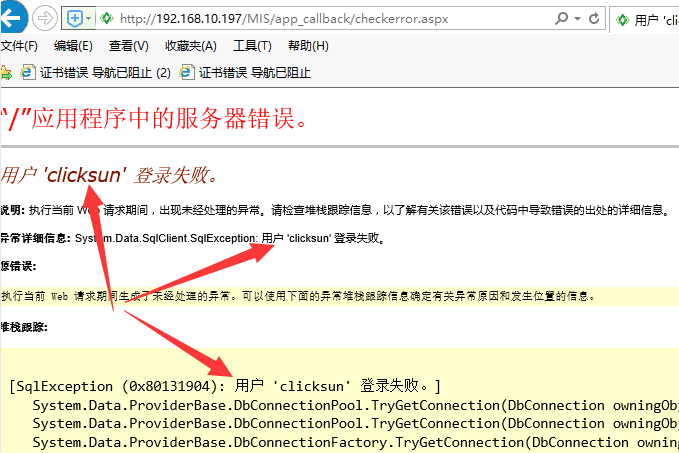 那就说明管理员没有配置 web.config 中数据库访问的用户名和密码,配置一下即可。还是参照第6步中的说明: