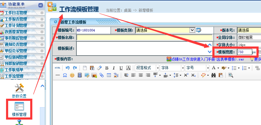 :如何更改点晴OA工作流申请页面的宽度,从而实现横向显示的效果?![]() 可以更改,位置如下: ![]() A4纸纵向打印的话,上面的数值推荐设置为:750px; A4纸横向打印的话,上面的数值推荐设置为:1024px。 如果要调整表格宽度,可以参考教程: