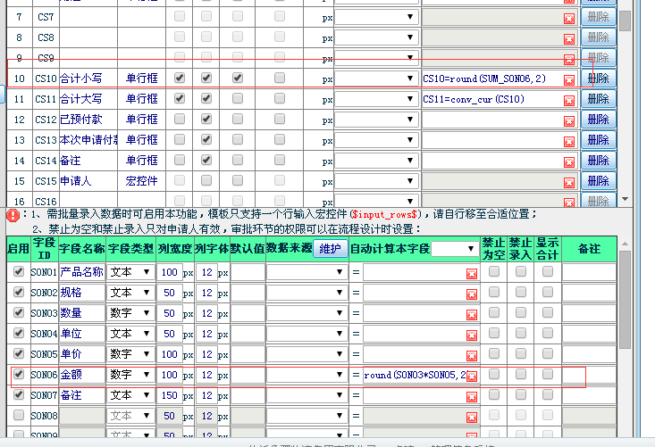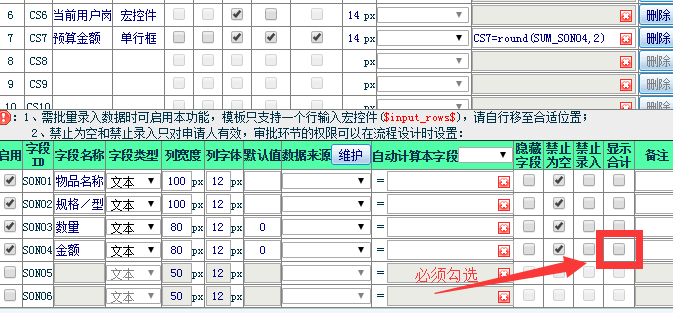 工作流模板中设置的自动相加合计公式在实际申请使用时不生效,要如何处理?
