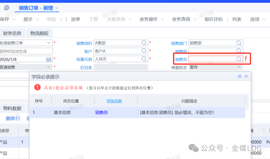 Q问题描述在平时下【销售订单】的时候,没有选择销售员系统是不允许保存订单的。那么,销售员,采购员、仓管员等这些业务人员要怎么加进系统呢?学完本篇文章,您将学会:①如何手动的新增业务人员。②如何自动的新增业务人员。 A问题解答在往下阅读前,大家务必先学习一下如何新增员工、岗位信息和员工任岗​这篇文章,因为【员工任岗】信...