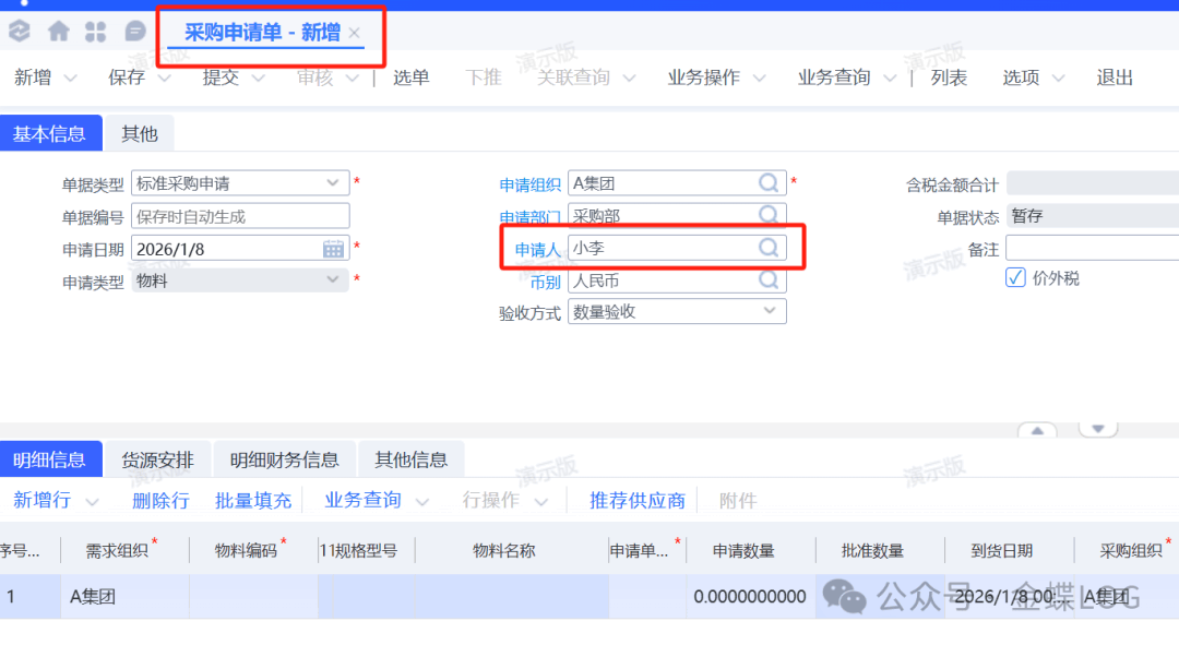 Q问题描述公司入职了新员工小李,是采购部的一名采购员;平时在下采购申请的时候申请人需要选到自己;系统应该要如何添加小李这名员工相关信息?学完本篇文章,您将学会:①如何新增员工信息。②如何新增岗位信息。③如何将员工和岗位信息绑定在一起。​ A问题解答一、新增员工信息路径:基础管理-基础资料-员工【员工】基础资料是全局的...